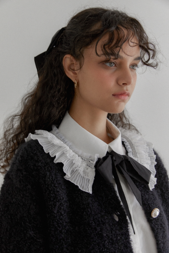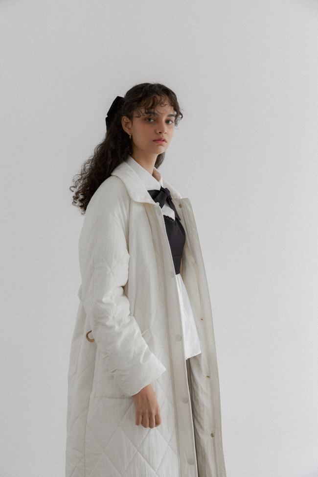 NARU KANG presents an original design under the slogan "PEP CLASSIC." "PEP CLASSIC" is a combination of "PEPY" in a lively and lively sense and elegant and sophisticated "CLASSIC". The Naru River creates a unique fashion mood by combining classic elements such as pintuck, ribbon, and pearl decorations with modern silhouettes. Made in three limited color palettes: black, white, and purple, this highlights the brand's originality. This combination of playful energy and luxurious elegance pursues fashion that does not change over time, providing a unique style unique to the Narugang River.